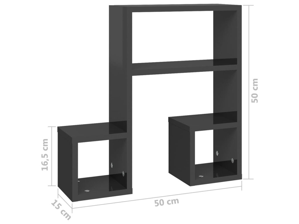 Nástěnné police 2 ks šedé lesklé 50x15x50 cm kompozitní dřevo 807249