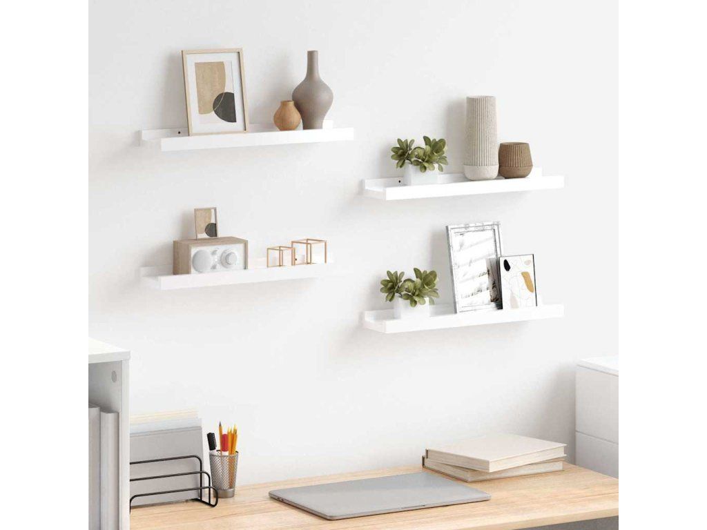 Nástěnné police 4 ks bílé s vysokým leskem 40 x 9 x 3 cm 326653