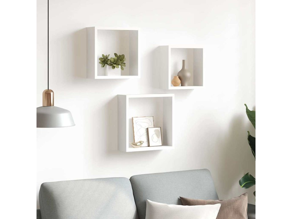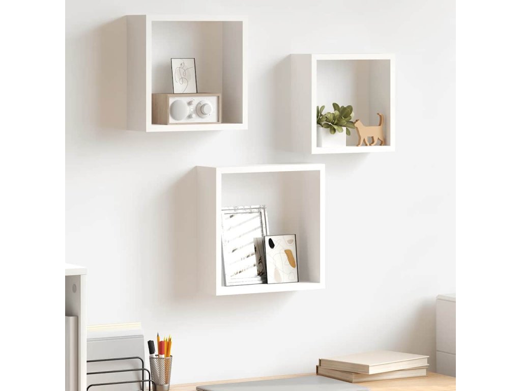 Nástěnné police kostky 3 ks bílé MDF 323949