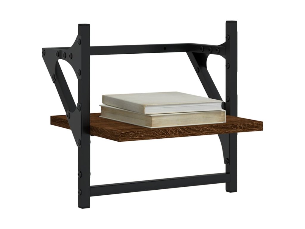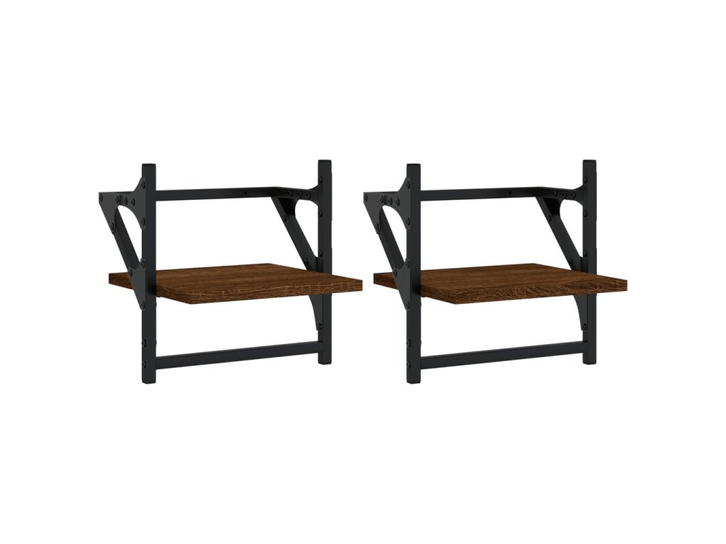 Nástěnné police s tyčemi 2 ks hnědý dub 30 x 25 x 30 cm 836237