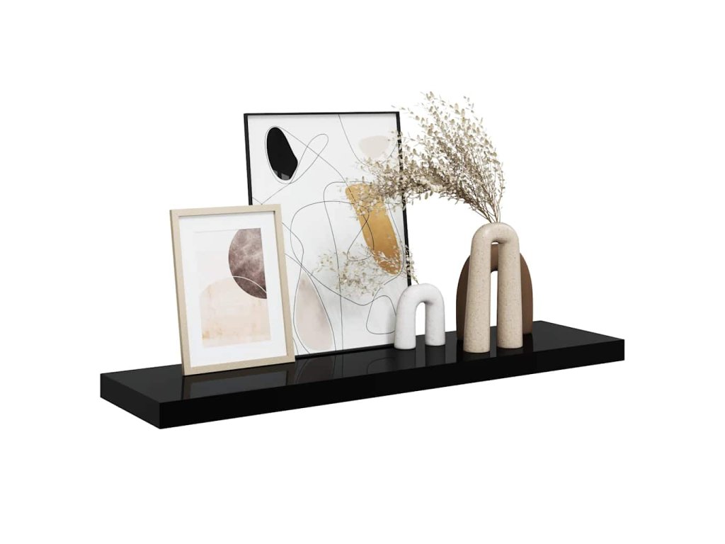 Plovoucí nástěnná police černá vysoký lesk 90x23,5x3,8 cm MDF 323775