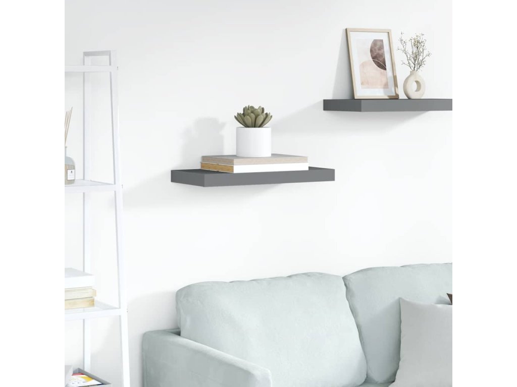 Plovoucí nástěnná police šedá vysoký lesk 50 x 23 x 3,8 cm MDF 323787