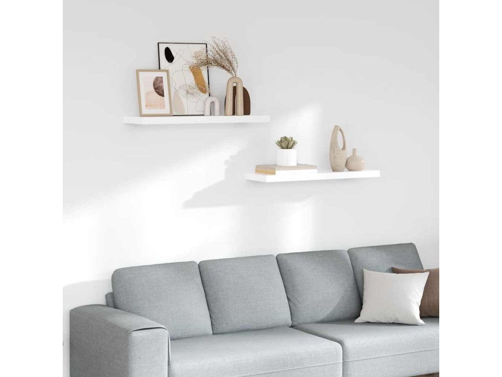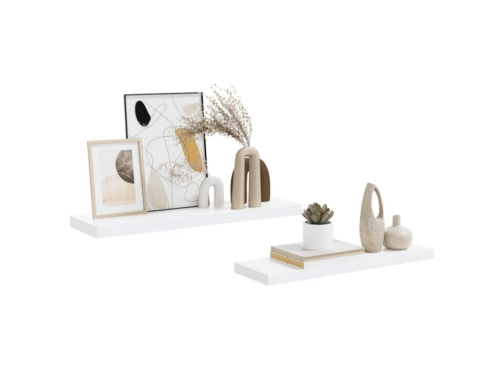 Plovoucí nástěnné police 2 ks lesklé bílé 80x23,5x3,8 cm MDF 323752