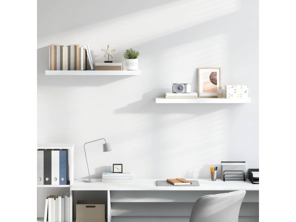 Plovoucí nástěnné police 2 ks lesklé bílé 90x23,5x3,8 cm MDF 323755
