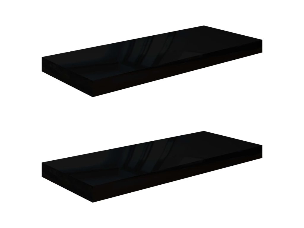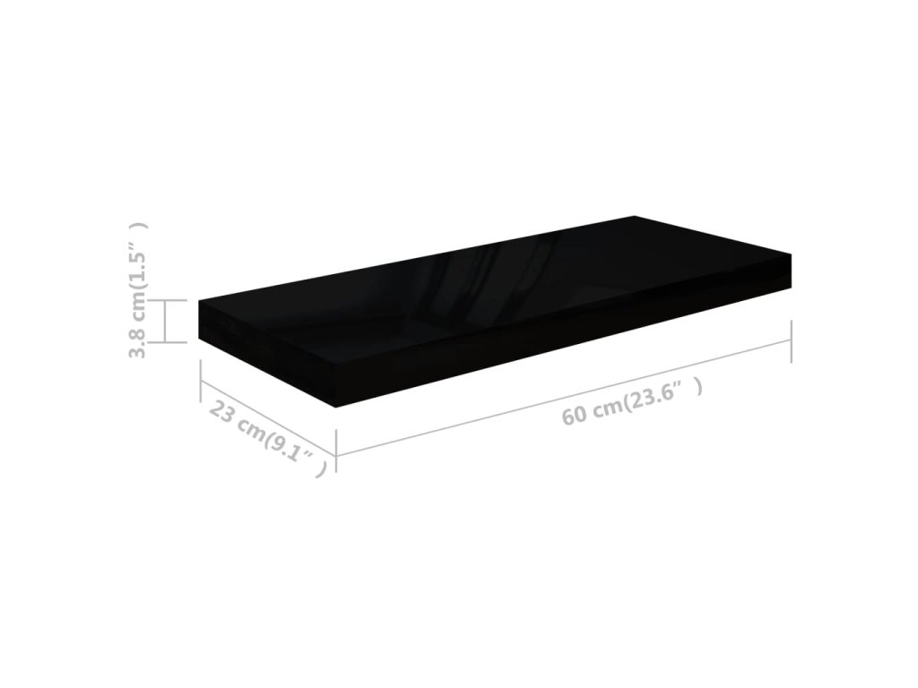 Plovoucí nástěnné police 2 ks lesklé černé 60x23,5x3,8 cm MDF 323770