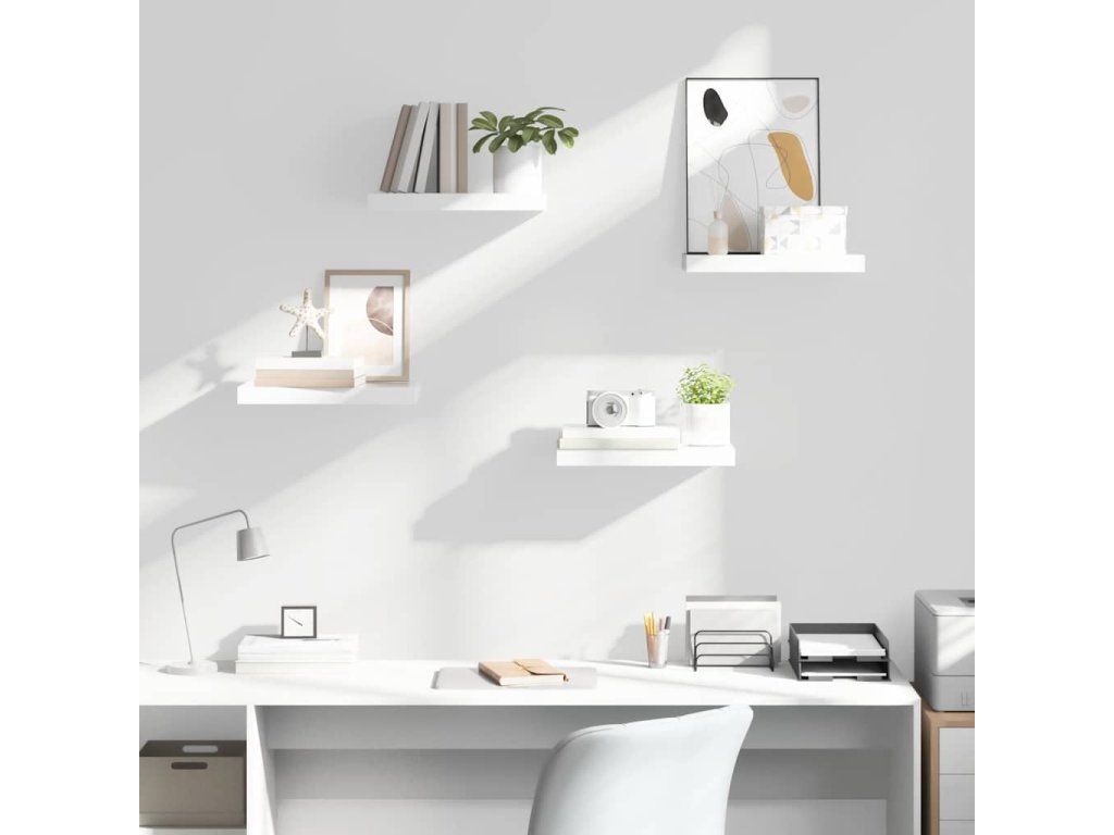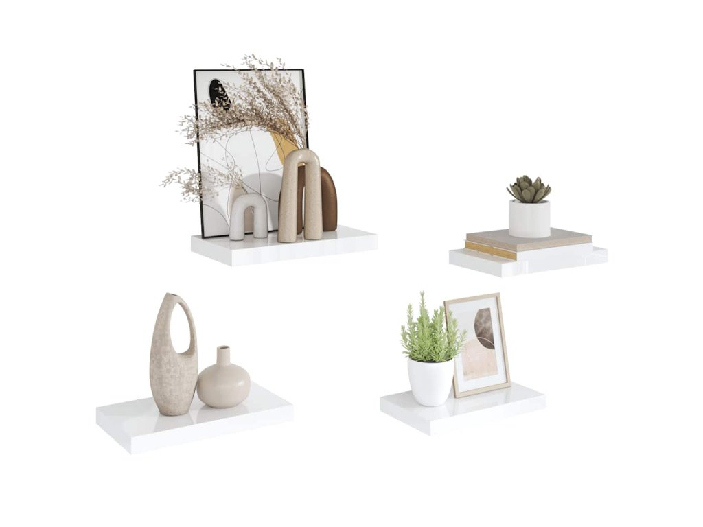 Plovoucí nástěnné police 4 ks bílé vysoký lesk 40x23x3,8 cm MDF 323744