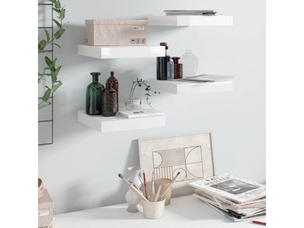 Plovoucí nástěnné police 4 ks lesklé bílé 23x23,5x3,8 cm MDF 323741