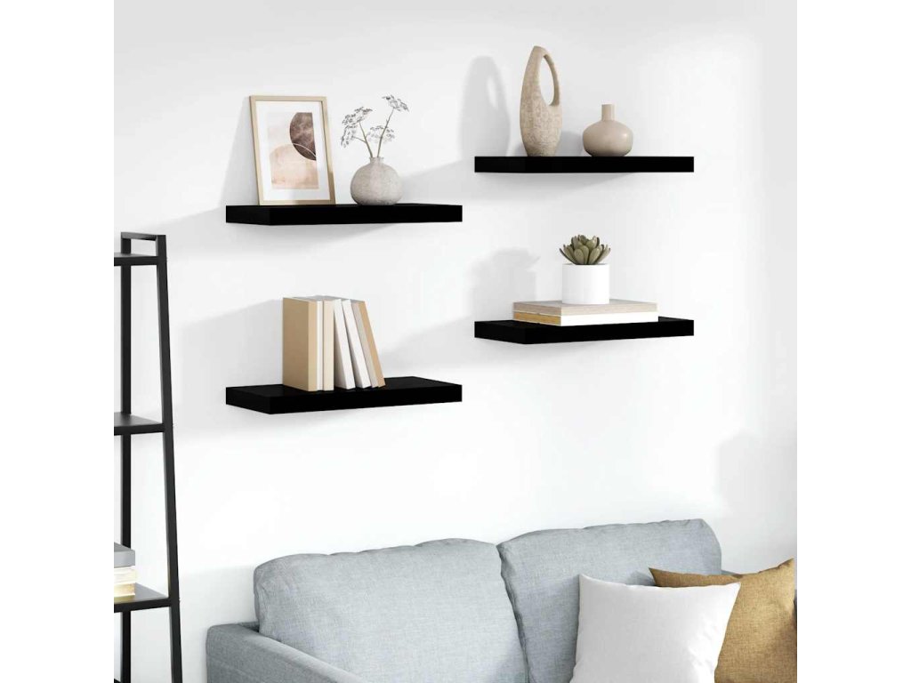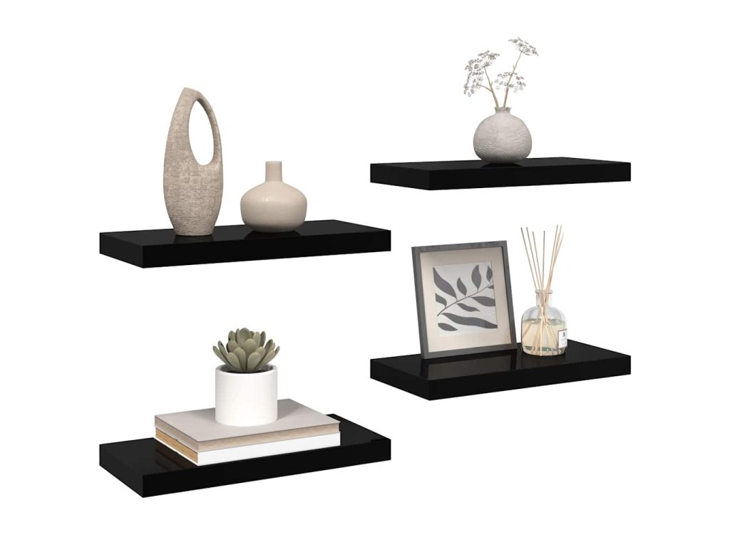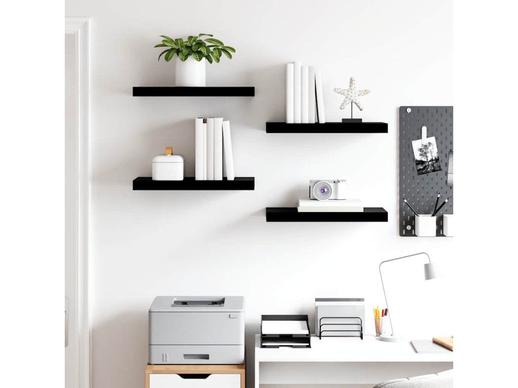 Plovoucí nástěnné police 4 ks lesklé černé 50 x 23 x 3,8 cm MDF 323768