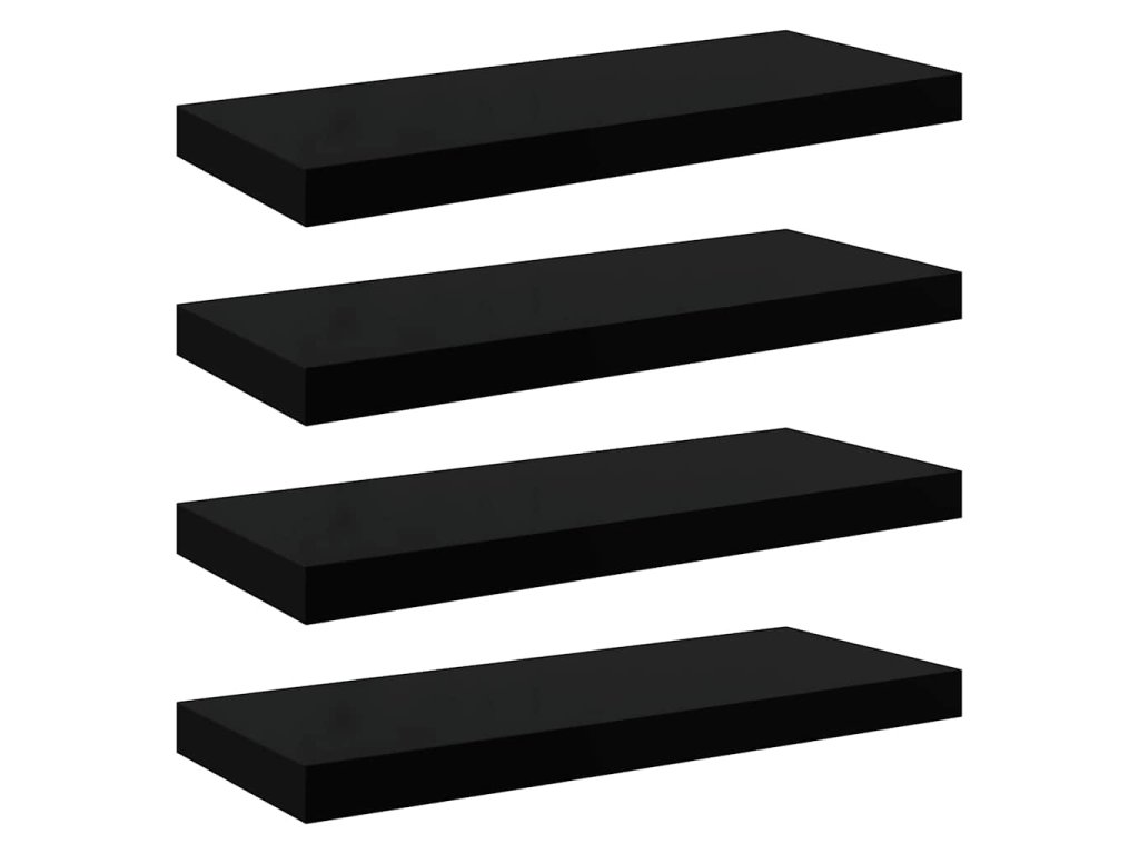Plovoucí nástěnné police 4 ks lesklé černé 60x23,5x3,8 cm MDF 323771