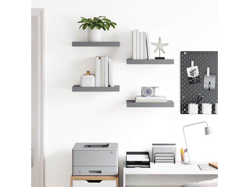 Plovoucí nástěnné police 4 ks šedé 40 x 23 x 3,8 cm MDF 323849