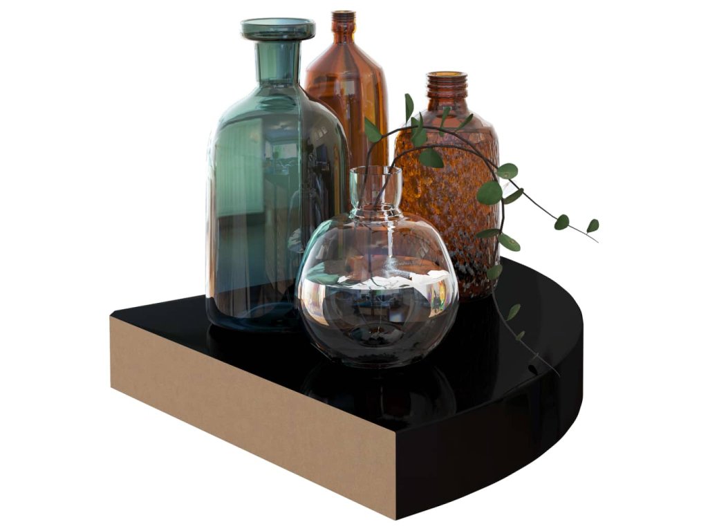 Plovoucí rohová police černá vysoký lesk 25 x 25 x 3,8 cm MDF 323889