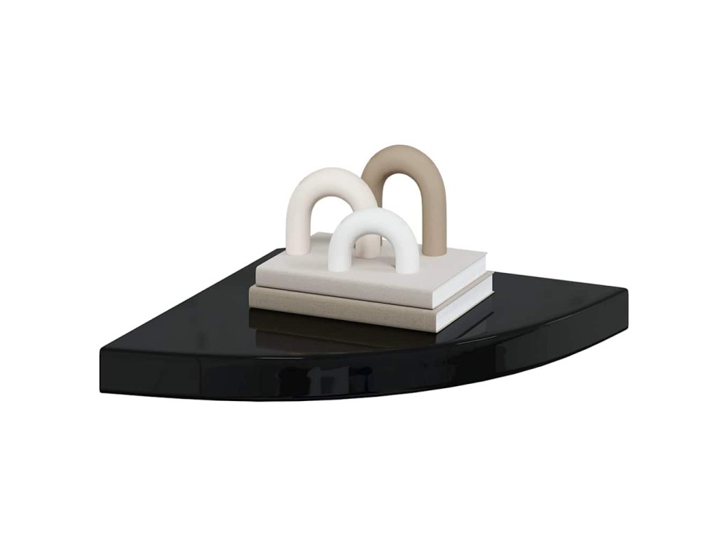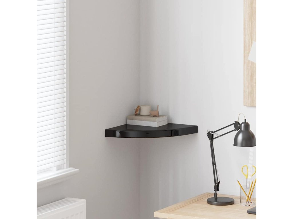 Plovoucí rohová police černá vysoký lesk 35 x 35 x 3,8 cm MDF 323910