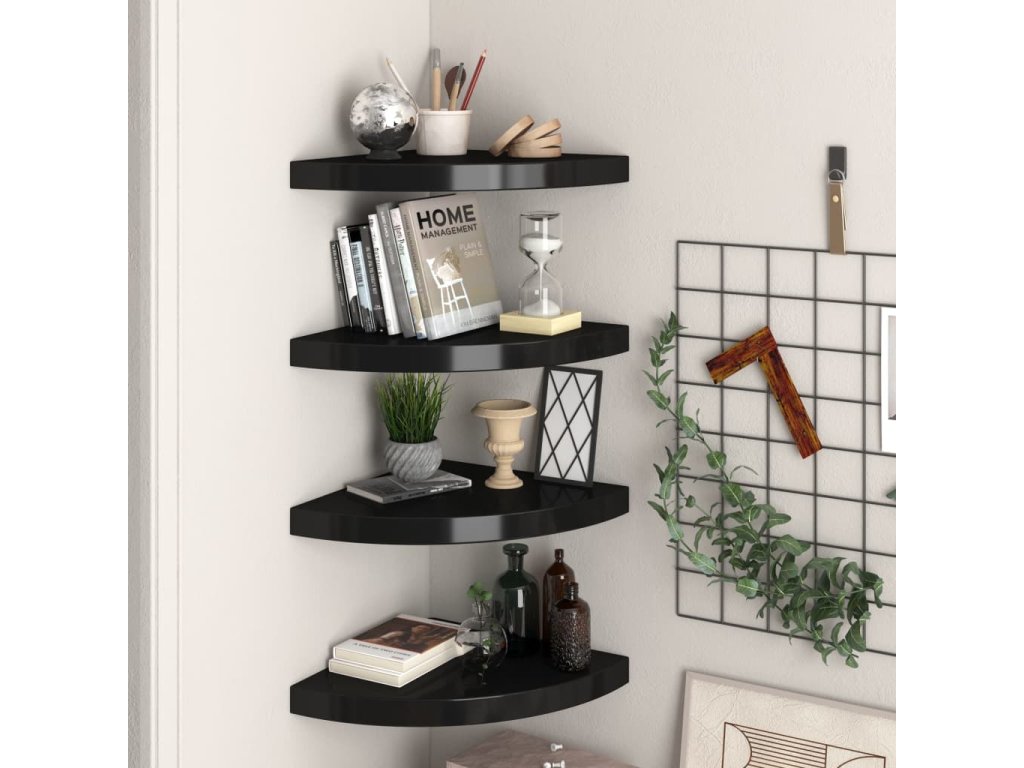 Plovoucí rohové police 4 ks černé 35 x 35 x 3,8 cm MDF 323921