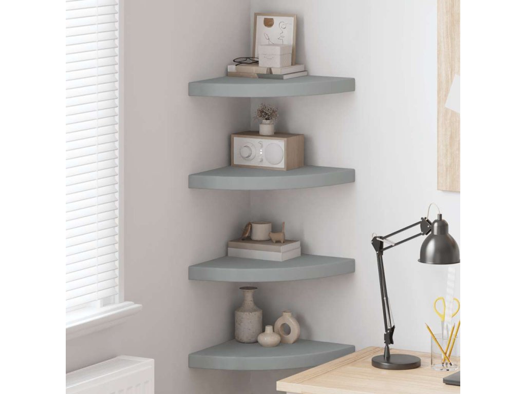 Plovoucí rohové police 4 ks šedé 35 x 35 x 3,8 cm MDF 323924