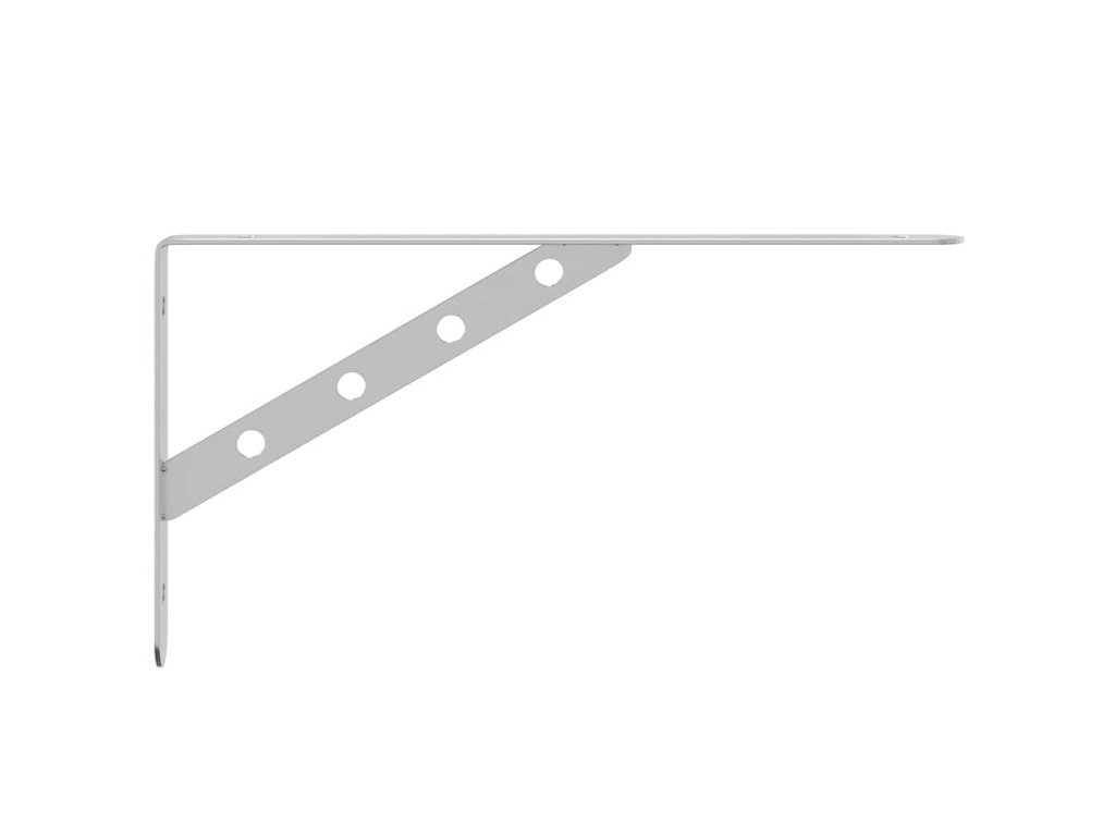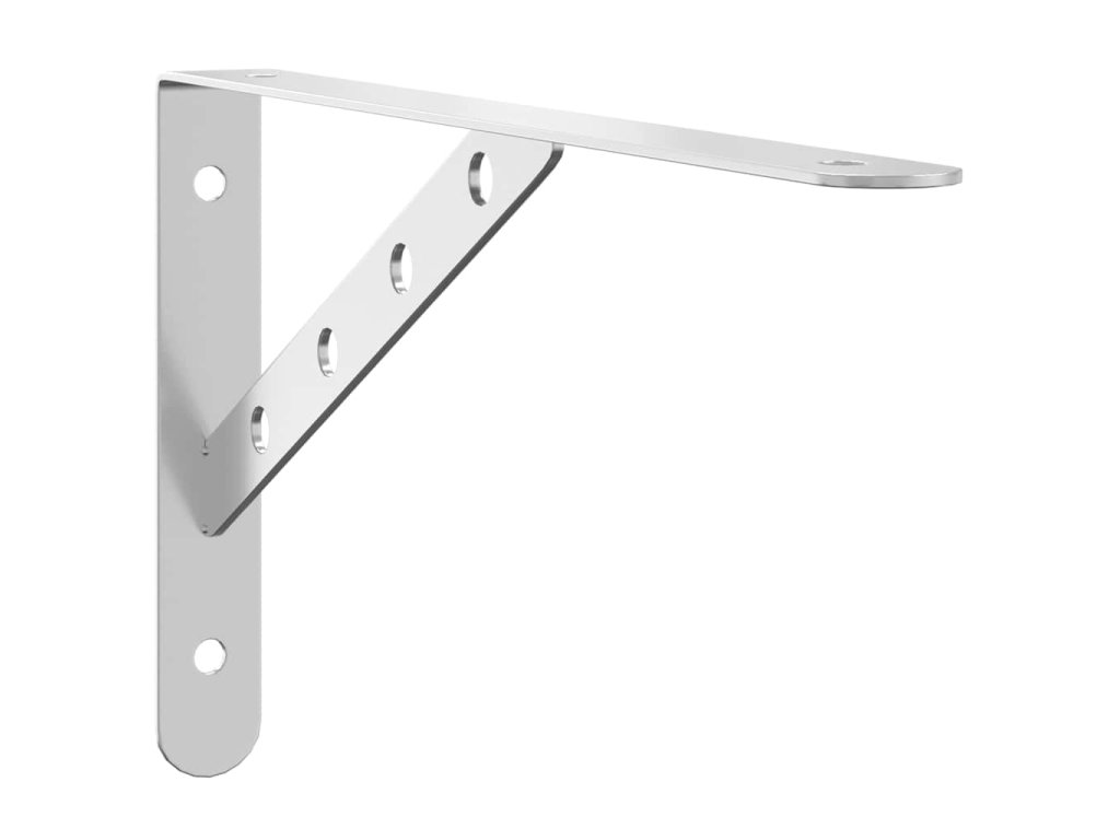 - Snadné použití: Díky předvrtaným otvorům v držáku je možné na něj snadno upevnit polici (není součástí dodávky) a připevnit na stěnu.
