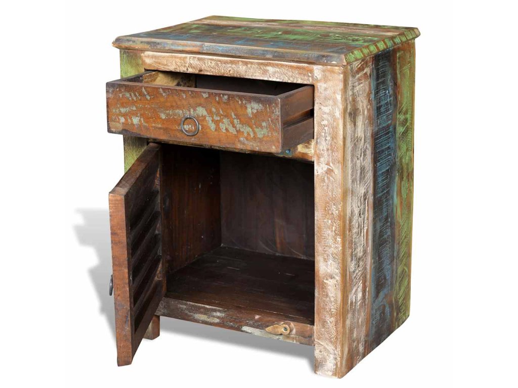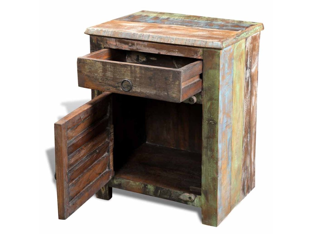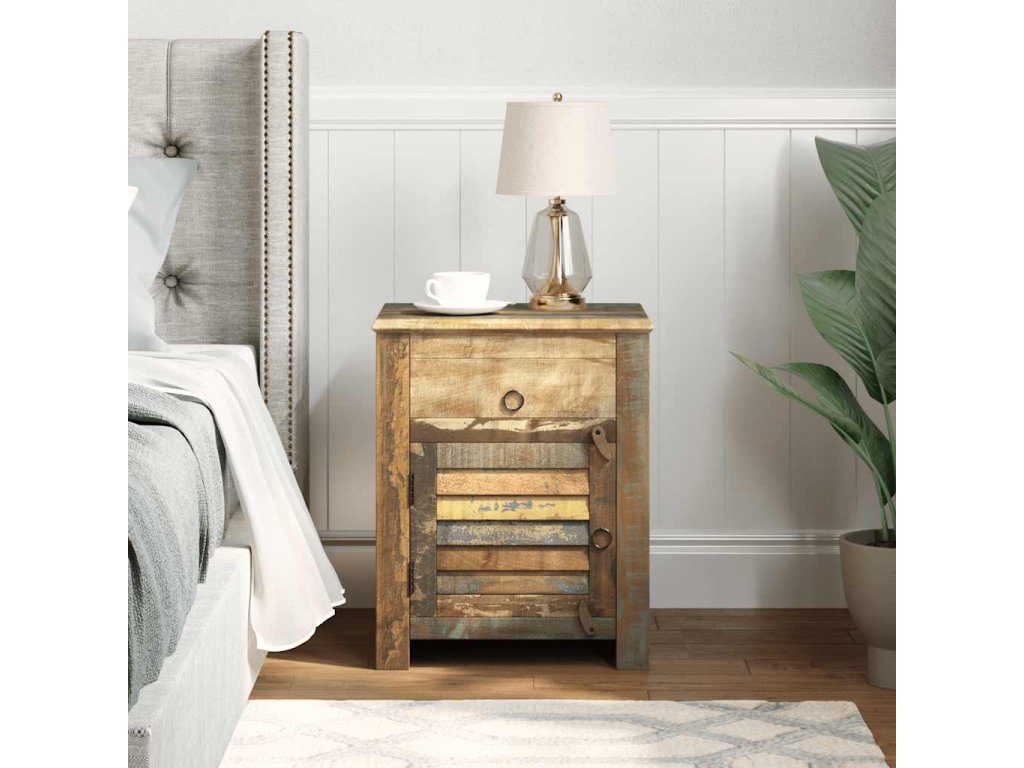 Koncový stolek s 1 zásuvkou a dvířky recyklované dřevo 240950