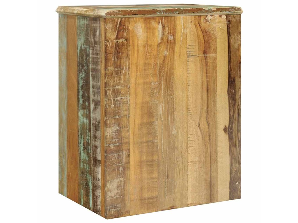 Tento úložný koncový stolek je vyrobený z recyklovaného dřeva, což znamená, že každý kus nábytku je jedinečný a lehce se odlišuje od ostatních. Nábytek z recyklovaného dřeva má vlastnosti různých druhů dřeva, jako je teak, akácie, mangovník, damarovník atd. Recyklované dřevo masivní, solidní, trvanlivé a krásné. Otvory po hřebících nebo odhalená struktura dřeva s sebou nesou jeho historii a vyzývají další generace, aby k ní přidali tu svoji. Tento kus nábytku ve vašem domě ukáže, že vám záleží na zachování zdrojů, ochraně životního prostředí a udržitelném rozvoji.