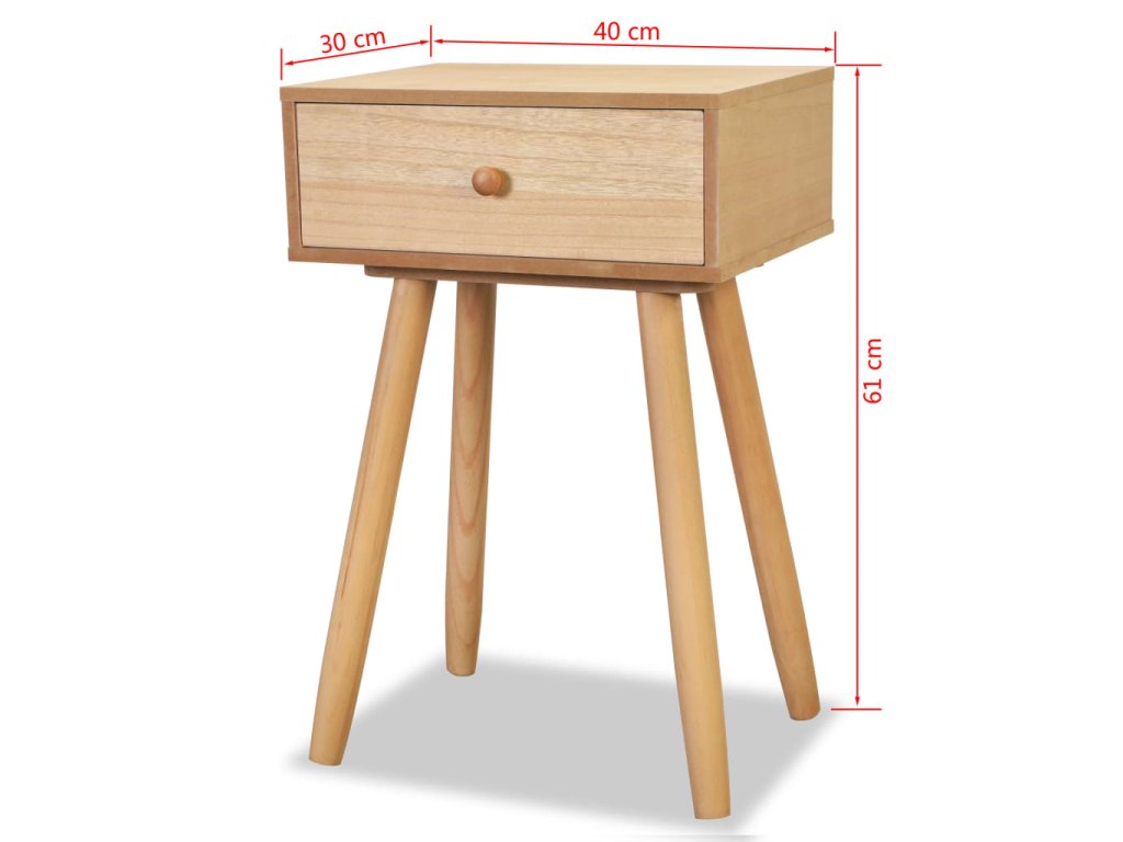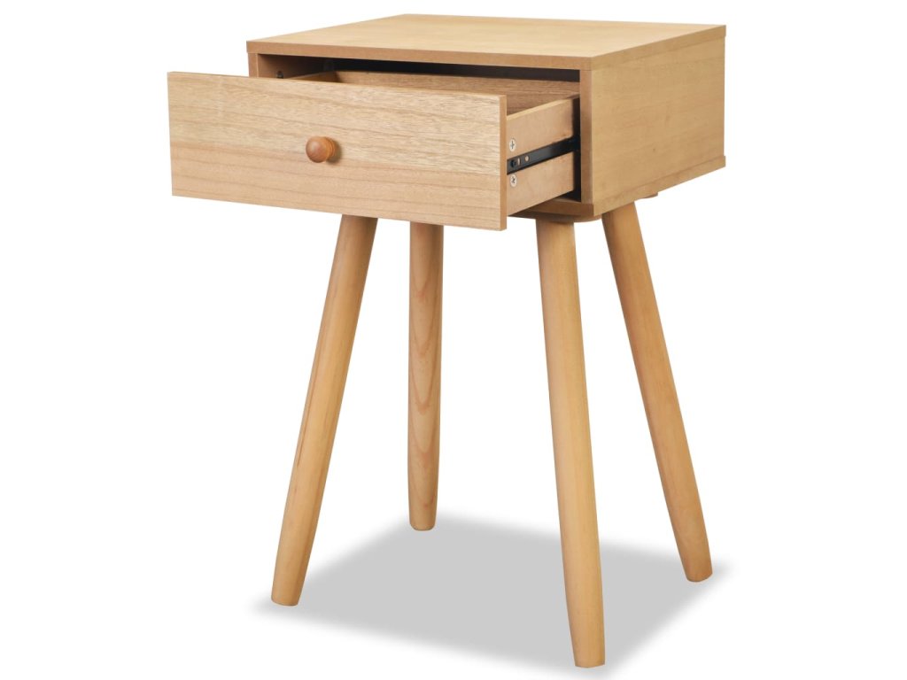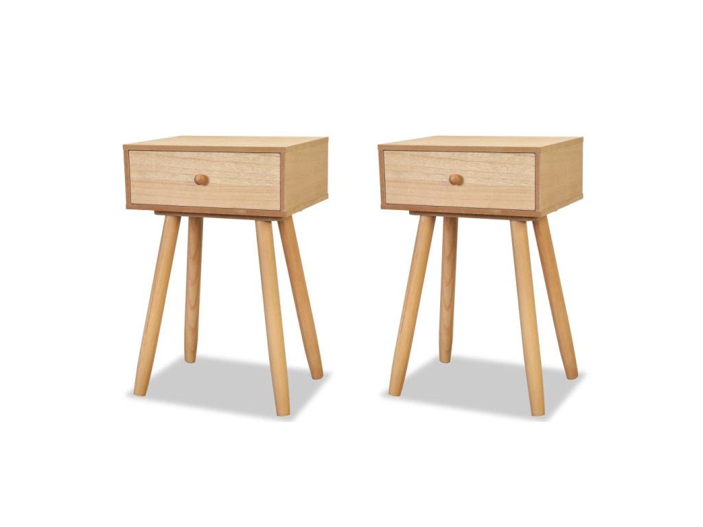 Oba noční stolky byly pečlivě vyrobeny z borového masivu a vysoce kvalitního MDF, takže jsou pevné a odolné. Stolky jsou kompaktní a disponují zásuvkou, která se hladce vysouvá. Můžete si do ní vyrovnat veškeré drobnosti, které chcete mít po ruce. Stolky lze také použít na odkládání věcí či jako podstavec pod telefon.