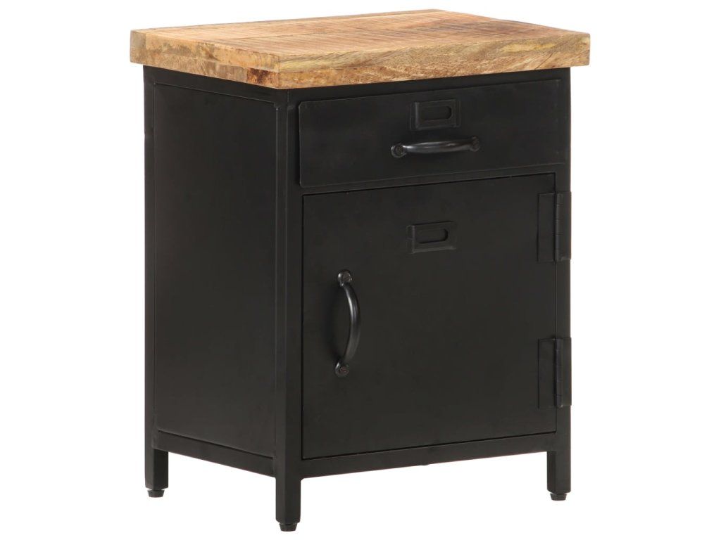 Noční stolek je vyrobený z masivního hrubého mangovníkového dřeva. Mangovník je tropické tvrdé dřevo, které unese velkou váhu. Rovněž výborně vzdoruje opotřebení, a proto je stabilní a má dlouhou životnost. Železo s černým práškovým lakem v kombinaci s ocelí přispívá ke stabilitě tohoto nízkého stolku. Řemeslné zpracování a krásná kresba dřeva dává každému kusu nábytku jeho jedinečný a od všech ostatních mírně odlišný charakter. Tato noční skříňka má také 1 zásuvku a přihrádku s dvířky, které poskytují dostatek úložného prostoru pro organizaci důležitých věcí na dosah ruky.