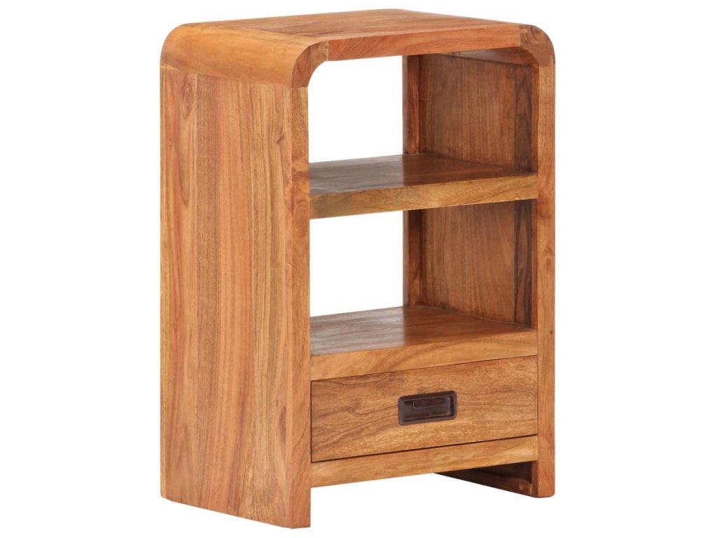 Tento noční stolek je zhotovený z masivního akáciového dřeva s medovou povrchovou úpravou, je tedy robustní a stabilní. Akáciové dřevo je tvrdé dřevo s krásnou strukturou, které vydrží mnoho let. Podobné akáciovému dřevu, známé jako růžové dřevo nebo palisandr, se vyznačuje svou bohatou strukturou. Každá fáze výrobního procesu se provádí s největší péčí, ať už se jedná o leštění, natírání nebo lakování. 2 police a 1 zásuvka poskytují dostatek prostoru pro úhledné uspořádání různých předmětů na dosah ruky.