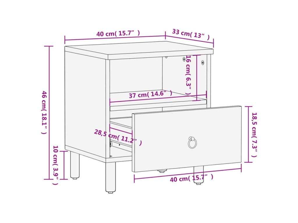Noční stolek 40 x 33 x 46 cm masivní mangovníkové dřevo 358218