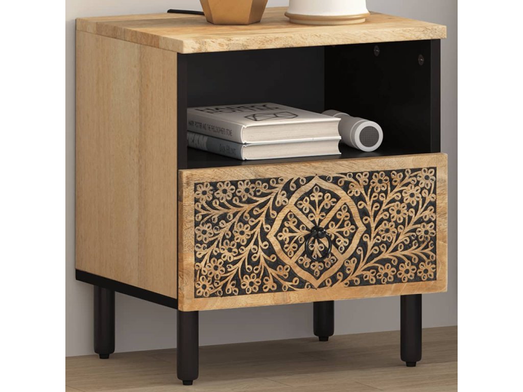 - Retro styl: Tento noční stolek s ručně vyřezávanými květinovými vzory vnese do vašeho interiéru luxus retro stylu a stane se ústředním bodem vašeho pokoje.