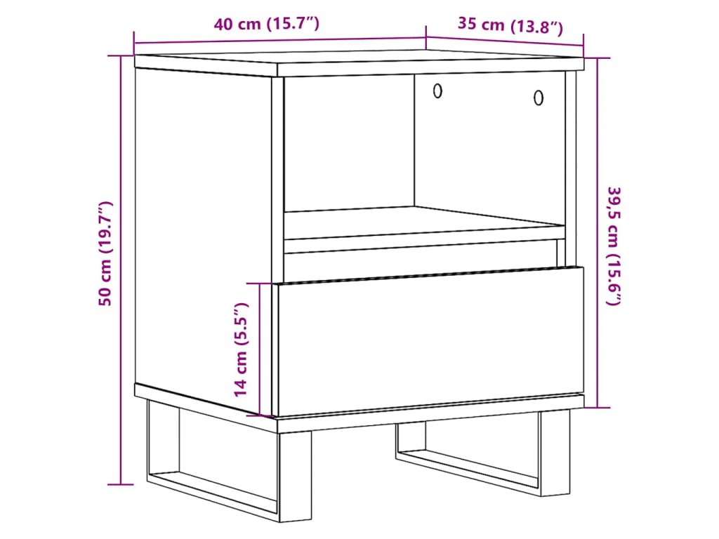 - Odolný materiál: Kompozitní dřevo je mimořádně kvalitní, má hladký povrch a vyznačuje se pevností, stabilitou a odolností proti vlhkosti. Noční stolek je vyroben z kompozitního dřeva a lze ho snadno očistit vlhkým hadříkem.