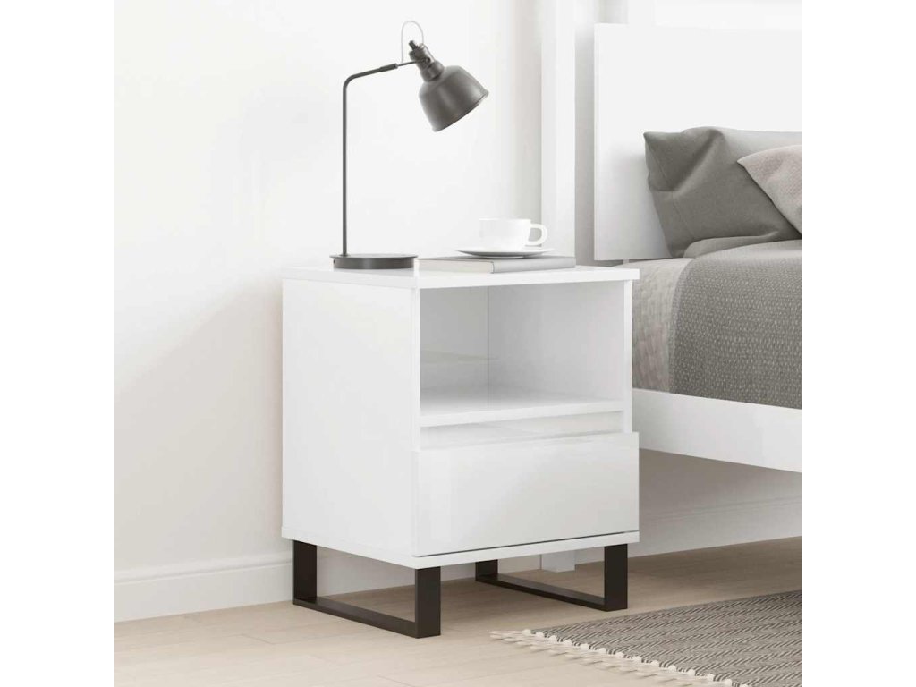 Noční stolek bílý s vysokým leskem 40x35x50 cm kompozitní dřevo 830640