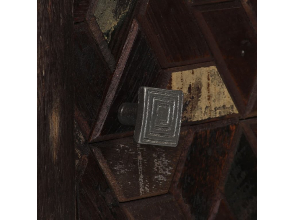 Stolek je zhotovený z masivního recyklovaného dřeva, které pochází z trámů, podlah a podpěrných nosníků ze starých budov určených k demolici. Může tedy obsahovat celou řadu různých typů dřeva, jako je borovice, teak, buk, dub, cedr, mangovník, akácie atd. Recyklované dřevo tak nabývá vlastností všech těchto rozličných druhů dřeva. Recyklované dřevo je již zestárlé, ošlehané a vyschlé, takže se nesmršťuje ani neohýbá. Překrásná kresba dřeva činí každý kus nábytku jedinečným a lehce odlišným od ostatních. Známky opotřebení a zřetelná textura dřeva vypovídají o jeho bohaté historii a dodávají příborníku hřejivý a autentický vzhled. Každá fáze výrobního procesu je prováděna s největší pečlivostí, ať už se jedná o leštění, natírání anebo lakování. Noční stolek disponuje spoustou úložného prostoru, v němž můžete uchovávat menší předměty tak, aby byly přehledně uspořádané a po ruce. Na horní desku si můžete položit budík nebo sklenici vody, ale také dekorativní předměty, jako jsou zarámované fotografie. Ocelové nohy přispívají k bytelnosti stolku a přitom zvýrazňují jeho industriální styl. Montáž je snadná.