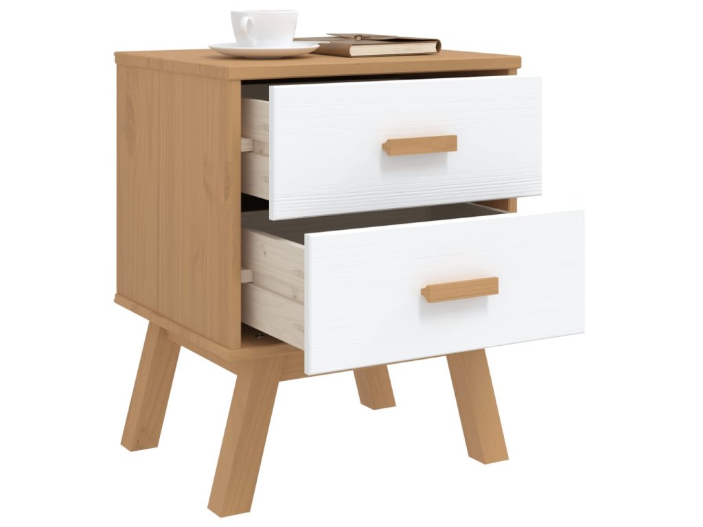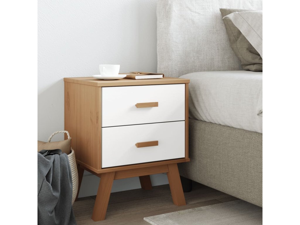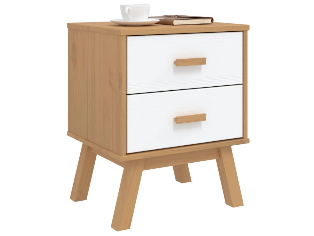 Noční stolek OLDEN bílý a hnědý masivní borové dřevo 358584
