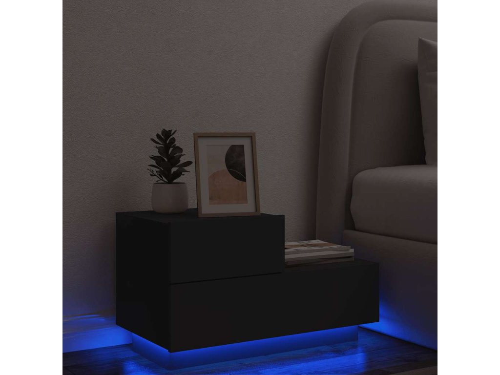 Noční stolek s LED osvětlením černý 70 x 36 x 40,5 cm 836778