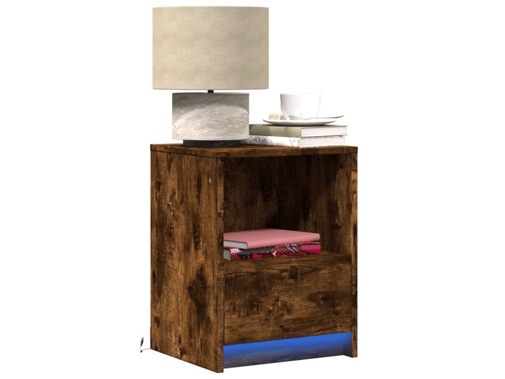Noční stolek s LED osvětlením kouřový dub kompozitní dřevo 852027