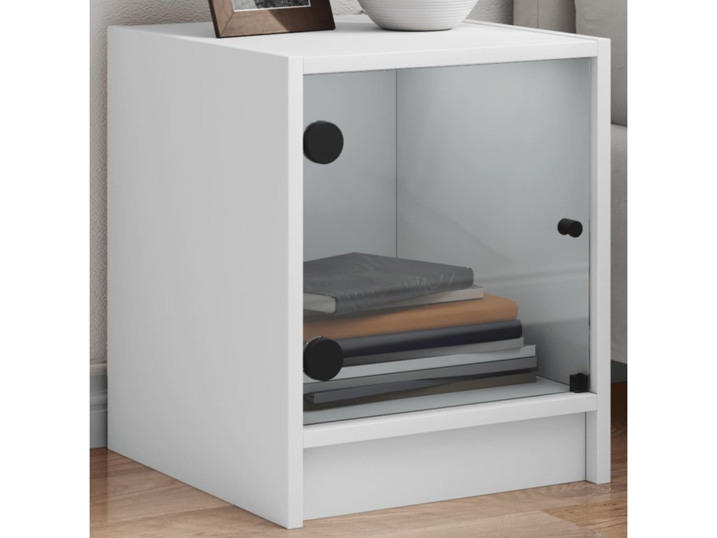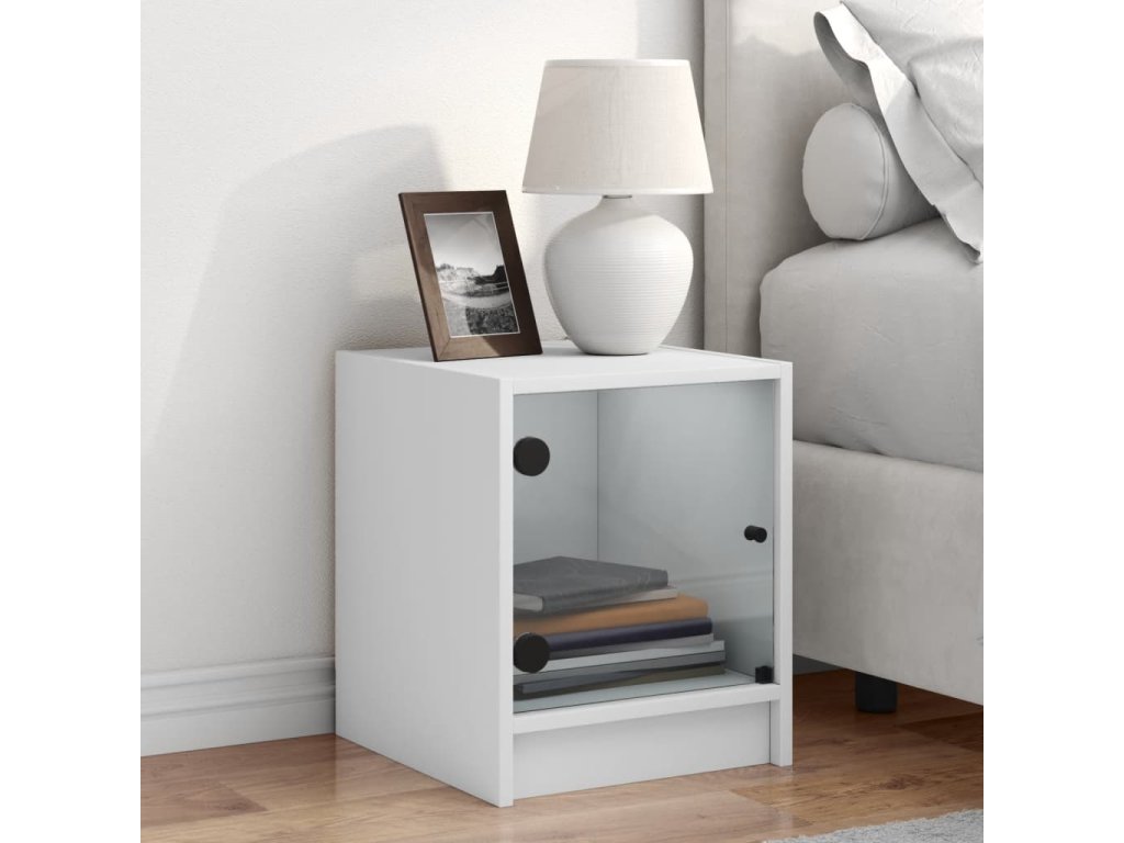 Noční stolek se skleněnými dvířky bílý 35 x 37 x 42 cm 836343