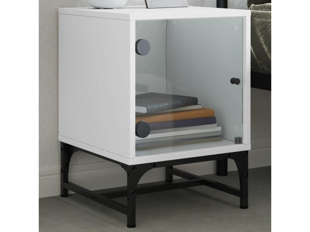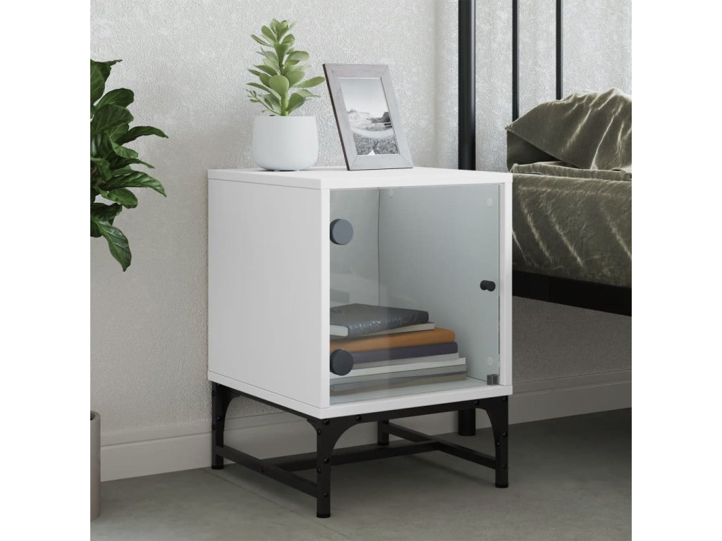 Noční stolek se skleněnými dvířky bílý 35 x 37 x 50 cm 836518