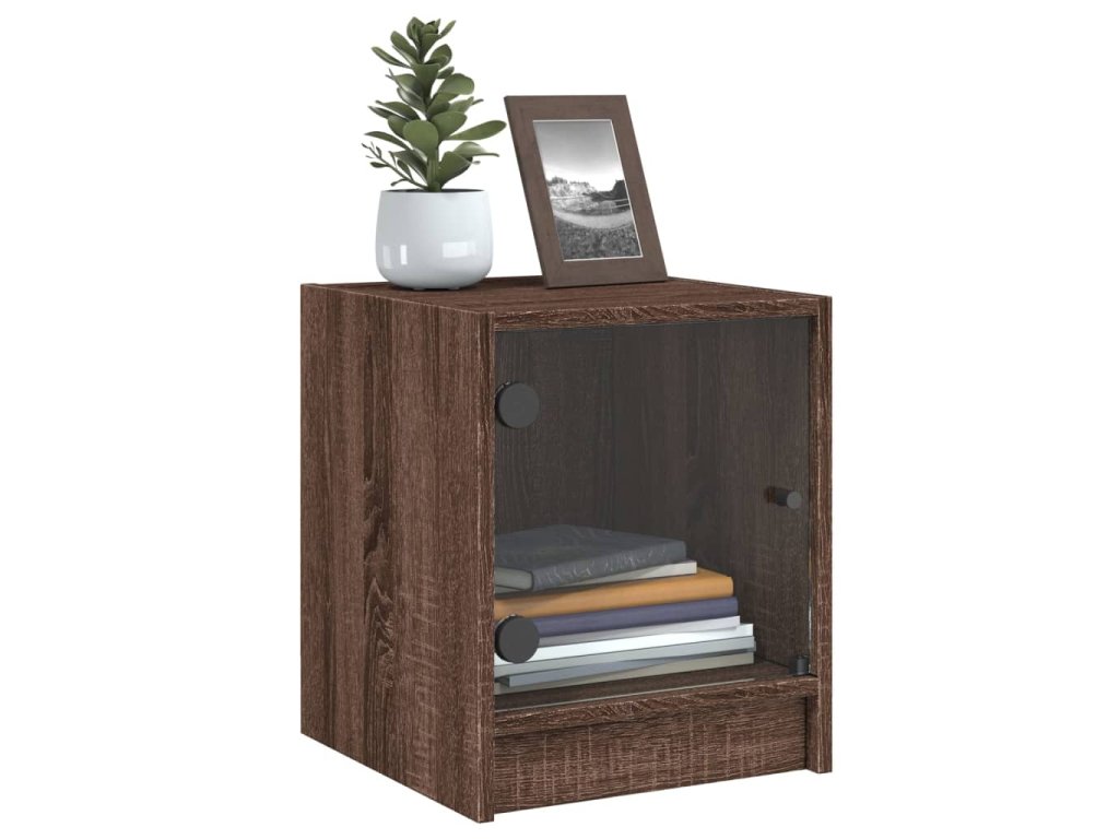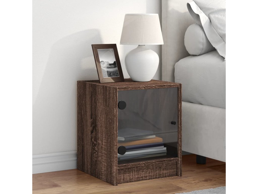 Noční stolek se skleněnými dvířky hnědý dub 35 x 37 x 42 cm 836355