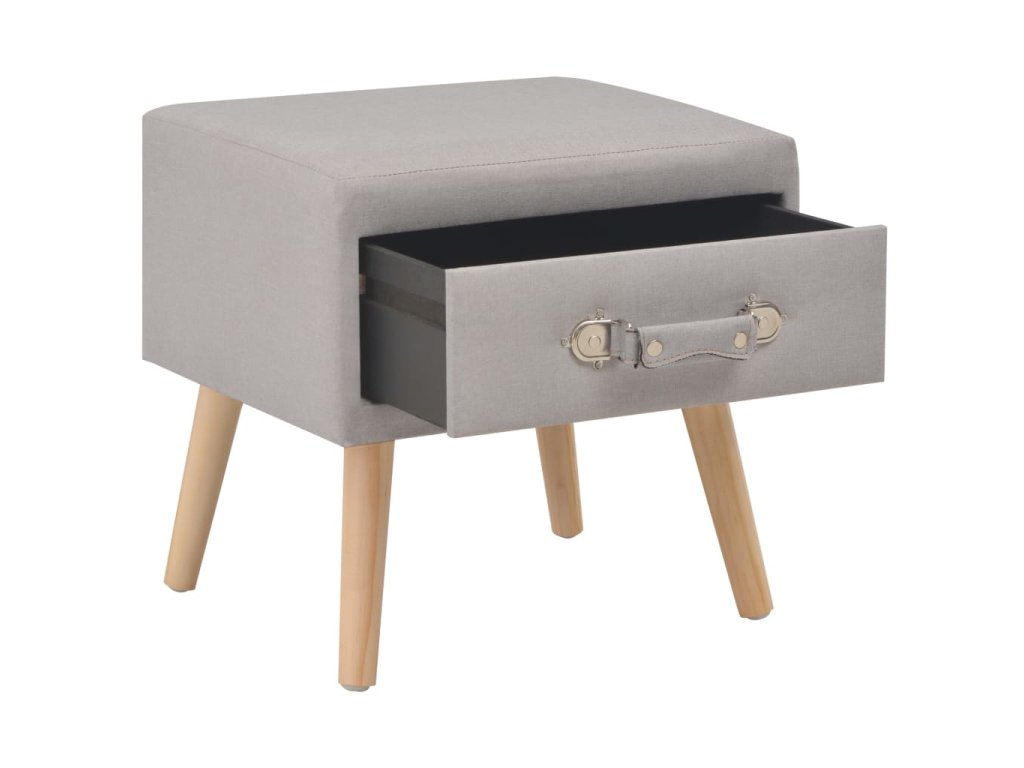Noční stolek byl mistrně zhotoven z látky a masivního borového dřeva, je tedy mimořádně odolný a trvanlivý. Disponuje zásuvkou, jež se hladce otevírá a zavírá a poskytne vám spoustu místa, kde si můžete přehledně uspořádat různé drobnosti, které chcete mít po ruce. Můžete ho navíc také použít jako skříňku do ložnice, klasickou skříňku se zásuvkou atd. Noční stolek se snadno sestavuje.