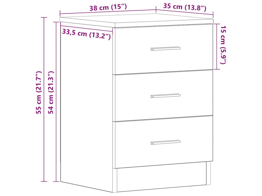 - Spousta úložného prostoru: Tato klasická odkládací skříňka disponuje třemi zásuvkami a poskytuje dostatek místa pro přehledné uložení vašich drobných věcí, které tak budete mít pěkně po ruce.