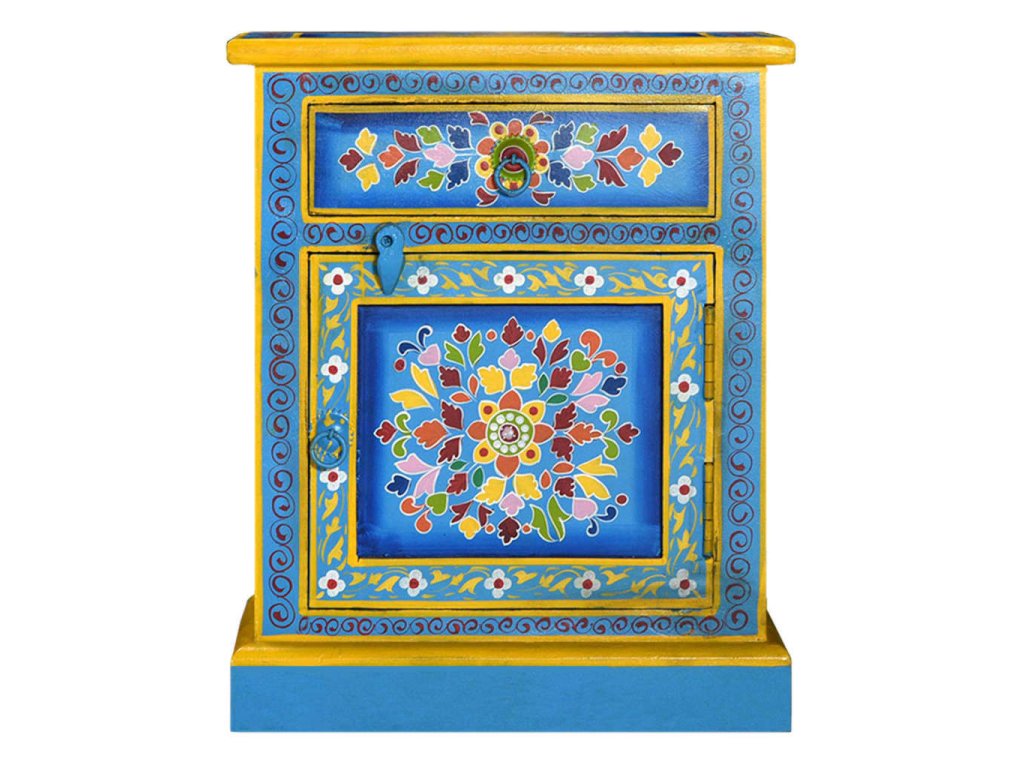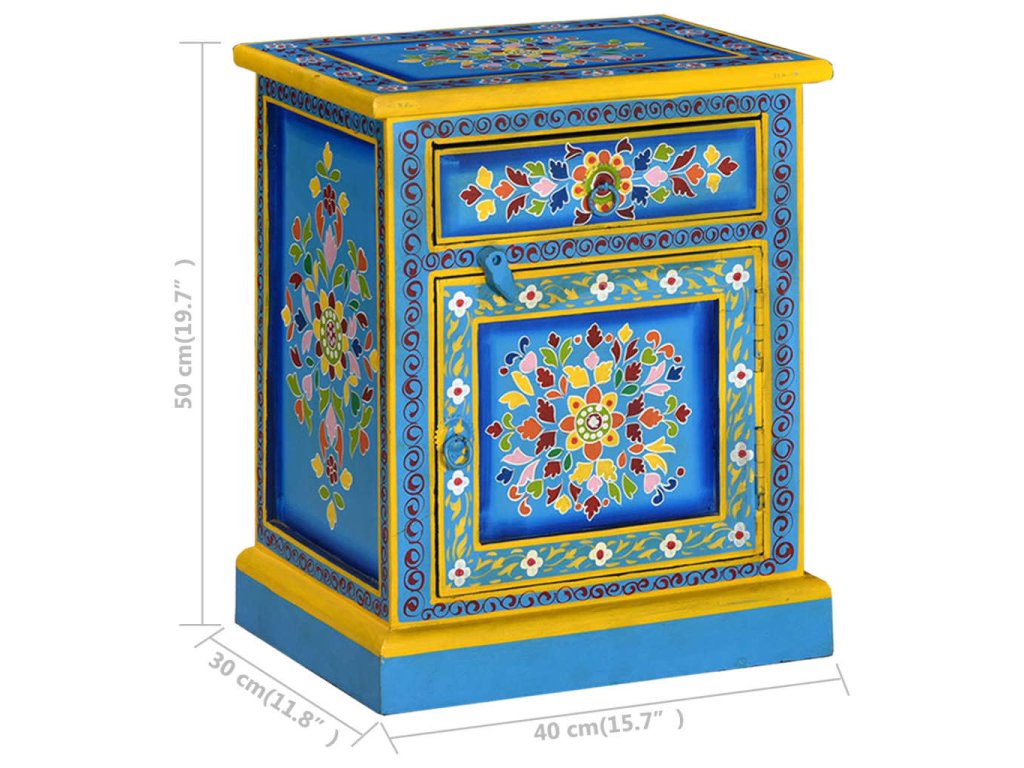 Noční stolek z masivního mangovníku ručně malovaný tyrkysový 244834
