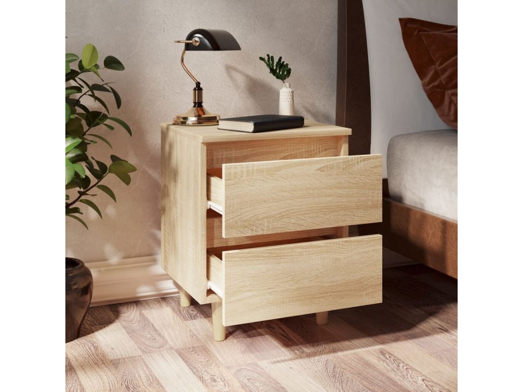 Noční stolky s nohami z borovice 2 ks dub sonoma 40x35x50 cm 805858