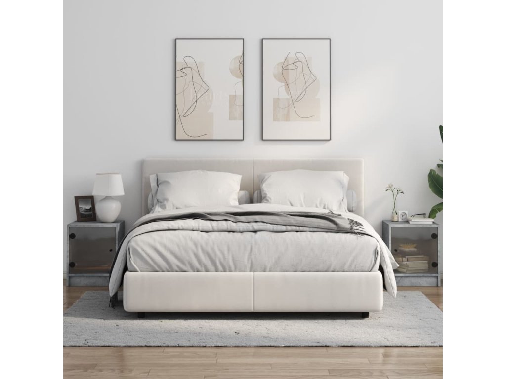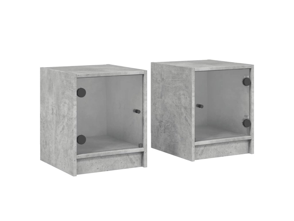 Noční stolky se skleněnými dvířky 2 ks betonově šedé 35x37x42cm 836350