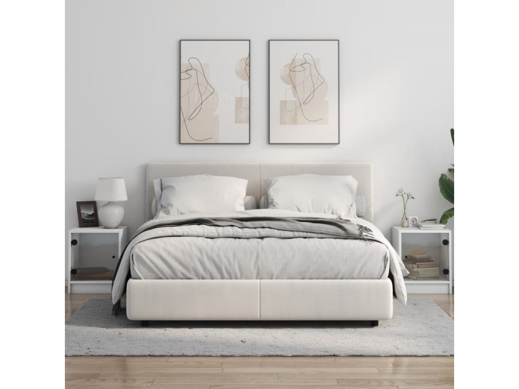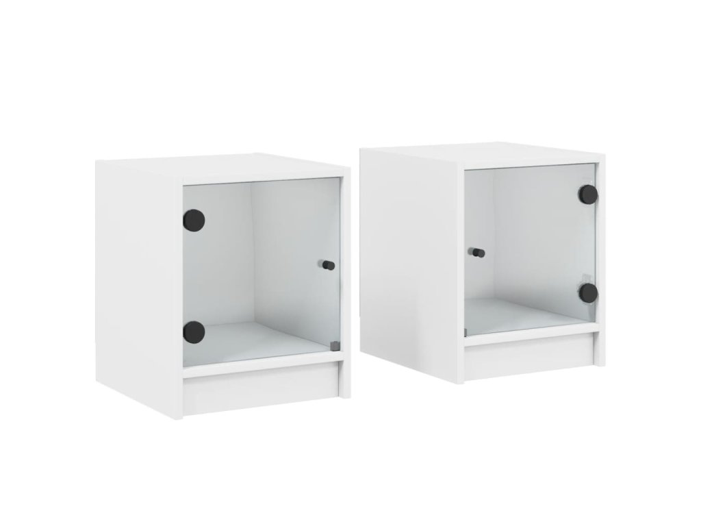 Noční stolky se skleněnými dvířky 2 ks bílé 35 x 37 x 42 cm 836344