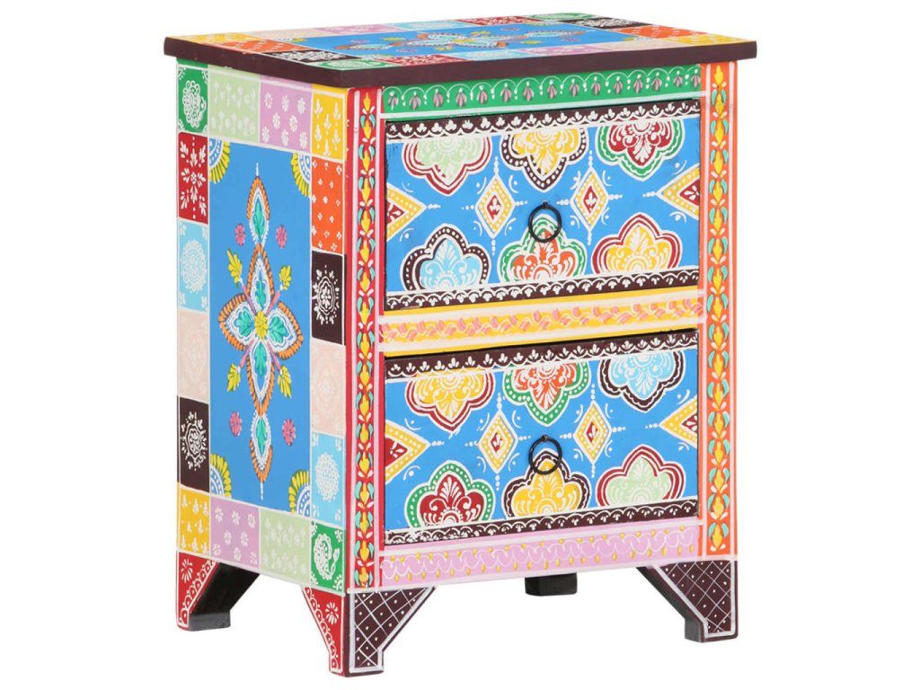Ručně malovaný noční stolek 40 x 30 x 50 cm masivní mangovník 321666