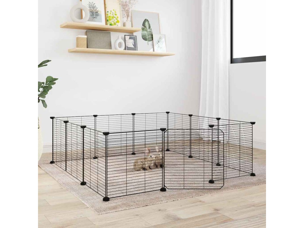 12dílná klec pro domácí mazlíčky s dvířky černá 35 x 35 cm ocelová 171626