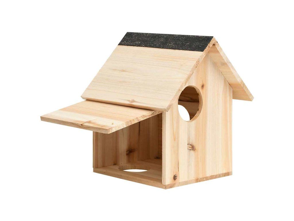 Tento domeček z vysoce kvalitního jedlového dřeva je zkonstruovaný z tlustých kusů, aby veverkám poskytl lepší izolaci a ochranu před nepřízní počasí. Má 3 vstupní otvory o průměru 7 cm, kterým mohou veverky snadno procházet. Domeček pro veverky je třeba umístit asi 3 nebo 4 metry od země a v blízkosti větve, aby veverka mohla snadno uniknout v případě nebezpečí.