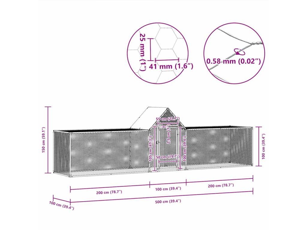 Venkovní klec pro kuřata 3 x 24 x 2 m pozinkovaná ocel 3095471