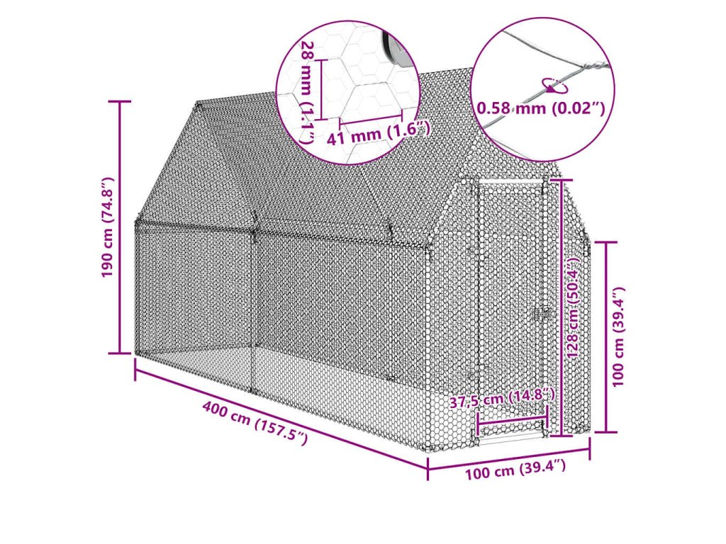 Klec pro kuřata stříbrná 400 x 100 x 190 cm pozinkovaná ocel 172551