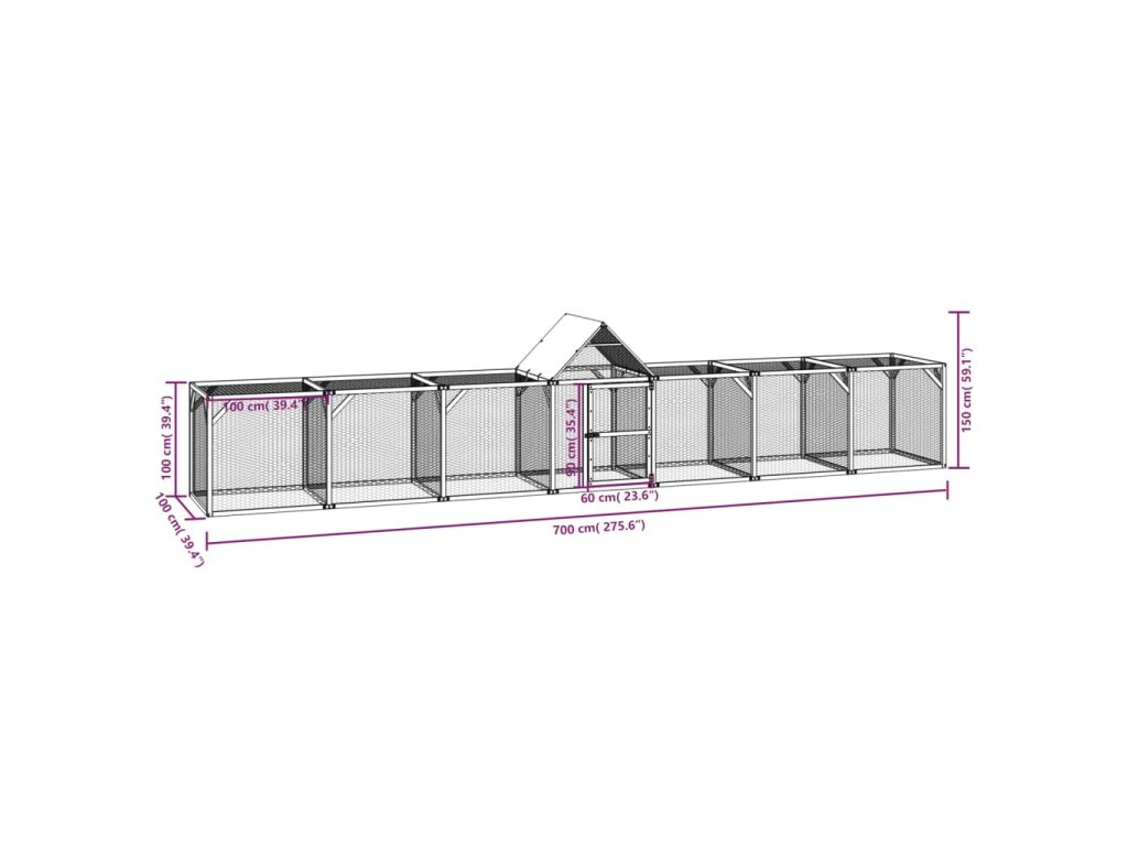 Kurník 700 x 100 x 150 cm impregnované masivní borové dřevo 3102984
