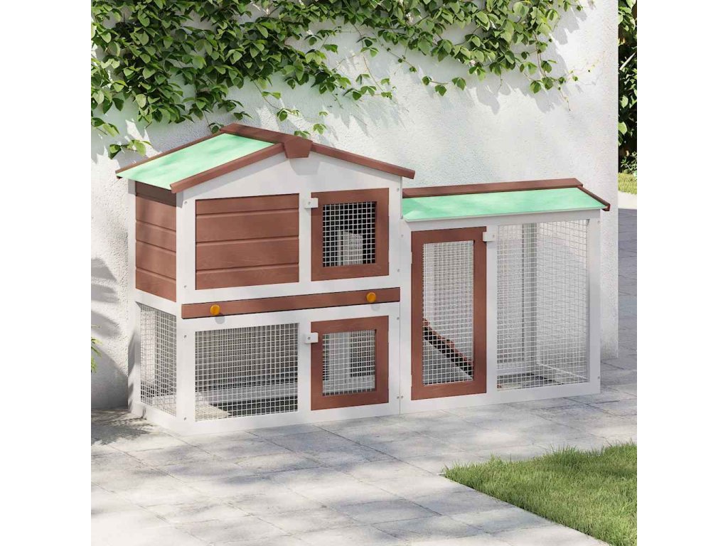 Velká venkovní králíkárna hnědo-bílá 145 x 45 x 84 cm dřevo 170841