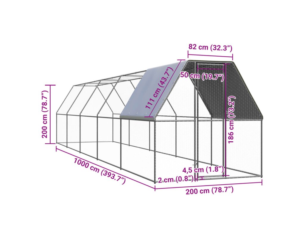 Venkovní klec pro kuřata 3 x 8 x 2 m pozinkovaná ocel 3089326