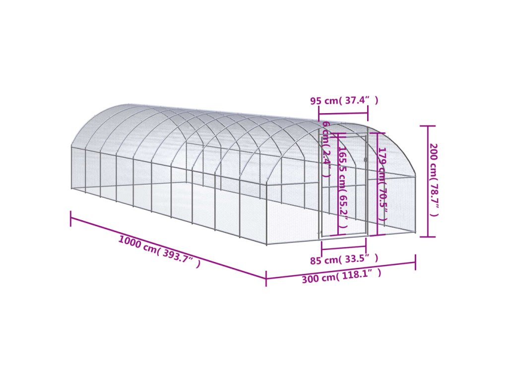 Venkovní klec pro kuřata 3 x 10 x 2 m pozinkovaná ocel 3095467